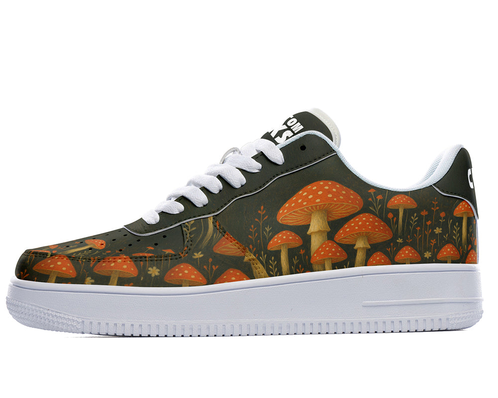 Toadstool Sneakers: Red Toadstool Mushroom Pattern Court Sneakers