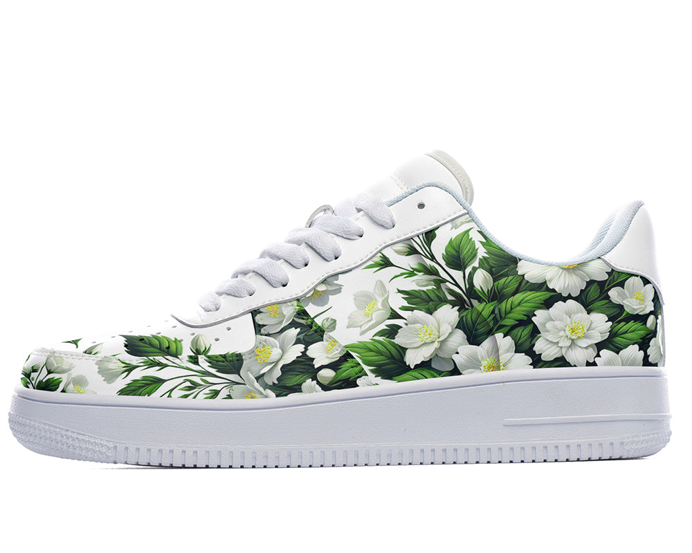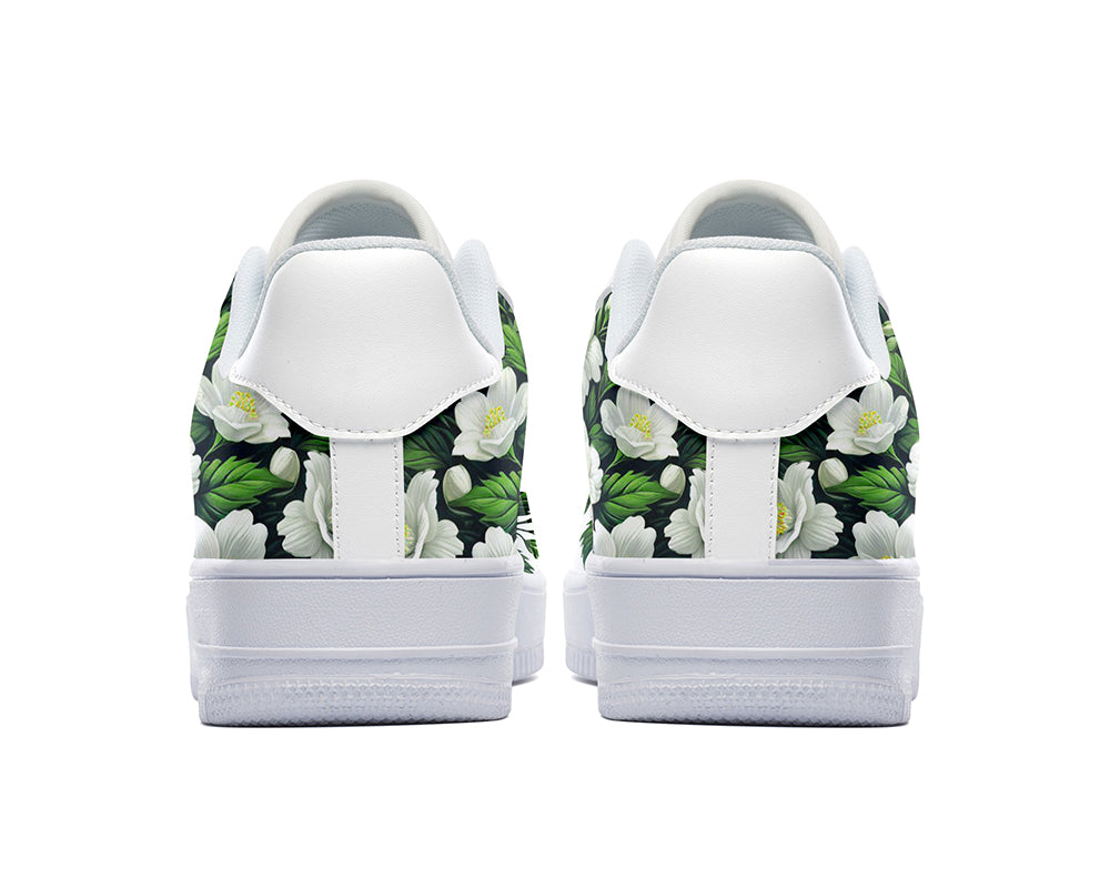 Jasmine Sneakers: Jasmine Flower Pattern Court Sneakers
